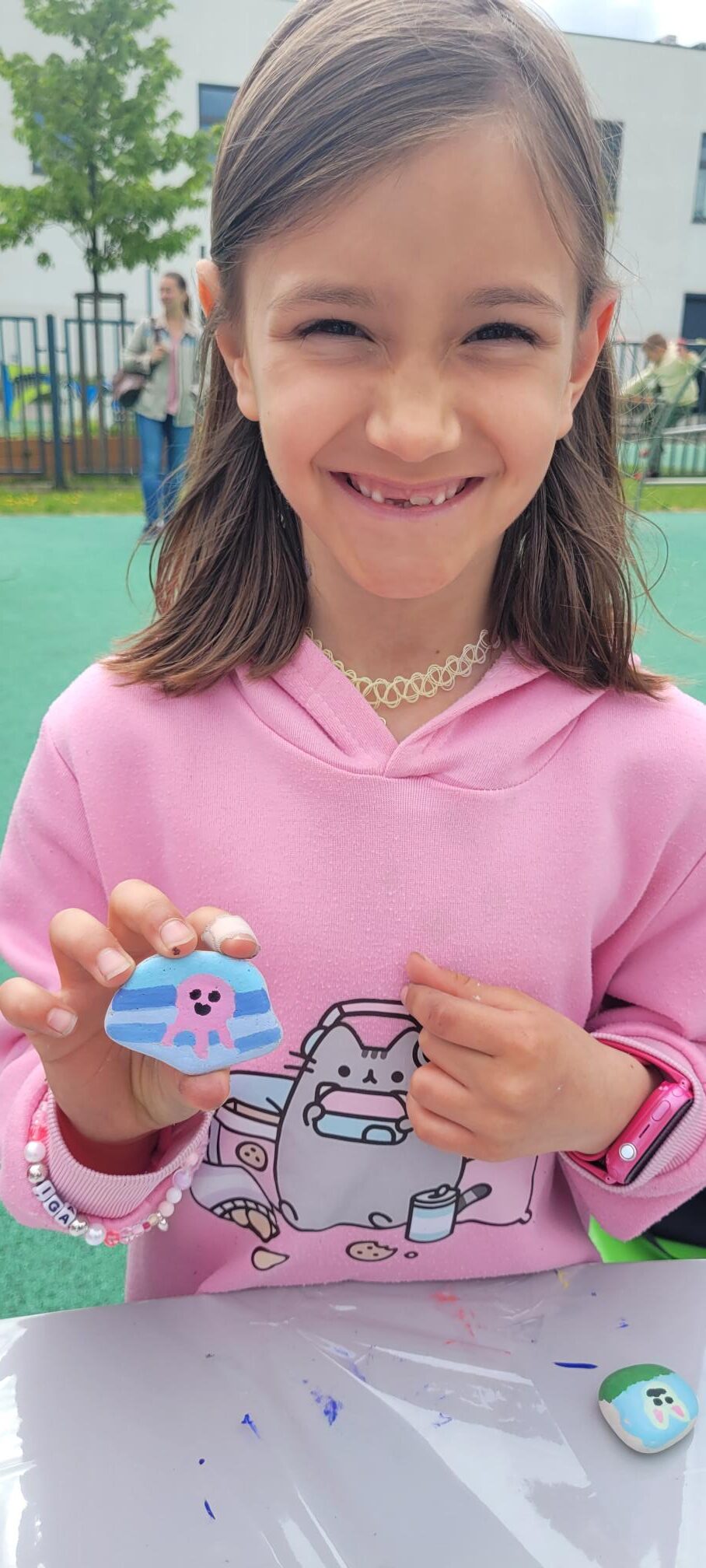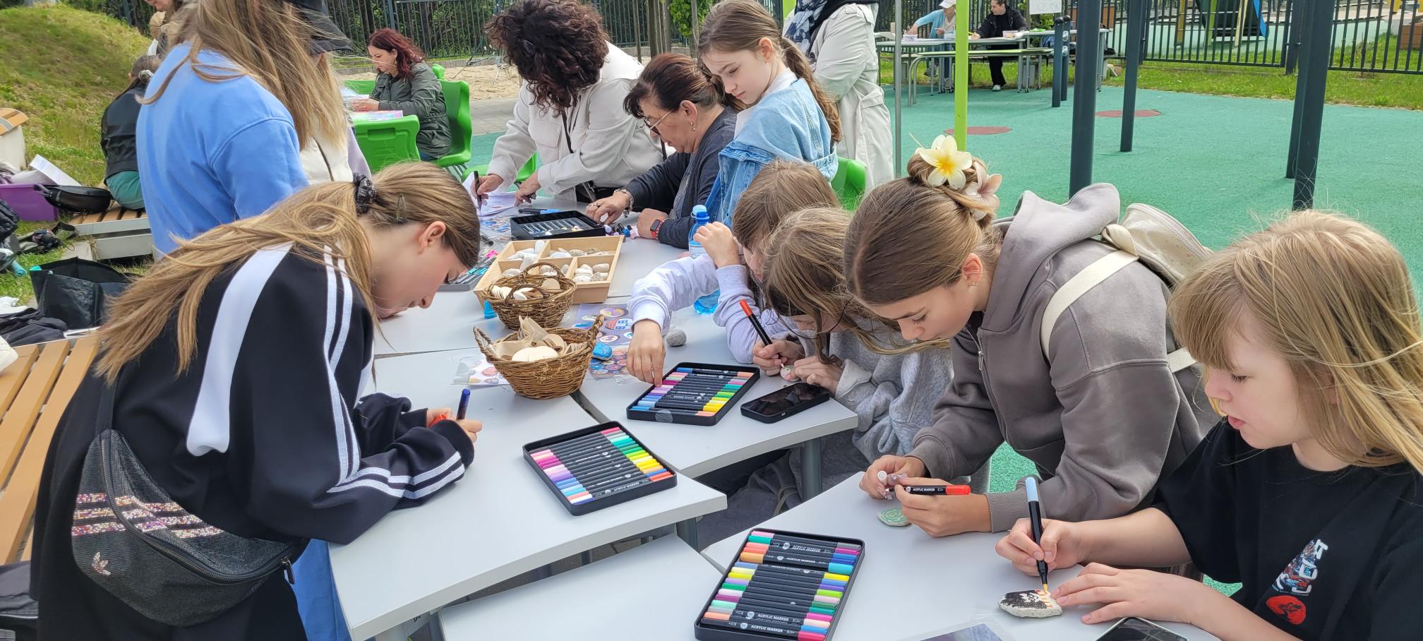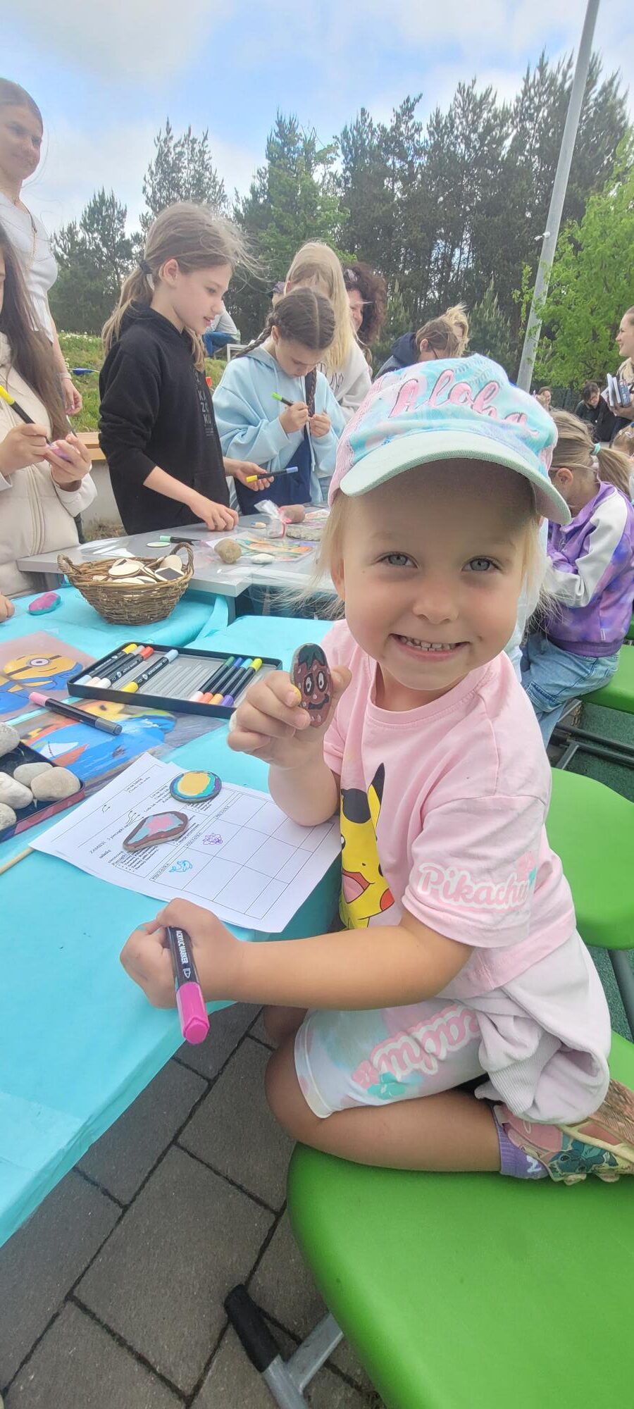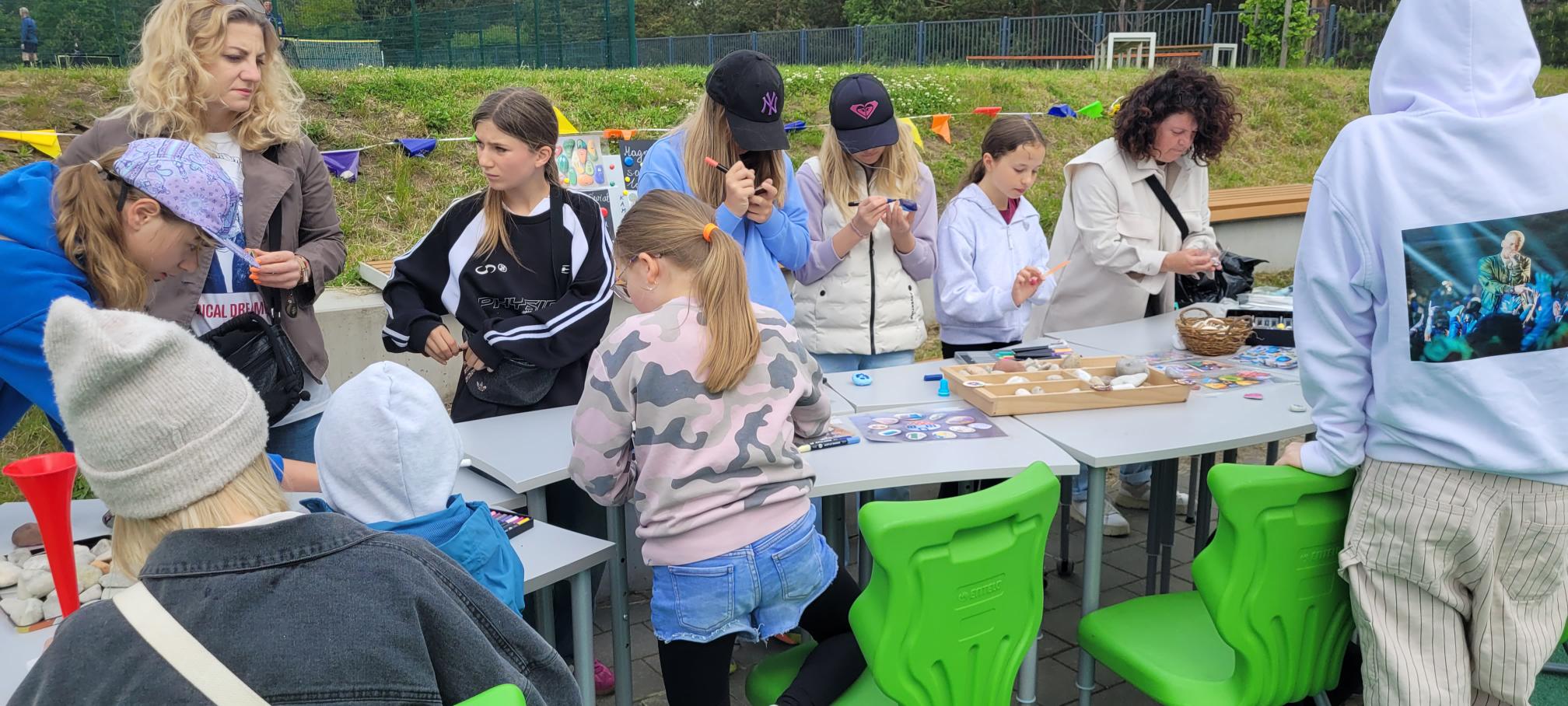 Na stoisku świetlicowym jak co roku nie zabrakło twórczej zabawy ! Dzieci mogły własnoręcznie wykonać bransoletki z koralików, malować kamienie, portrety oraz tworzyć oryginalne magnesy – każdy był inny i wyjątkowy. Wspaniała atmosfera, uśmiechy na twarzach i piękna pogoda sprawiły, że ten dzień na długo zostanie w naszej pamięci.