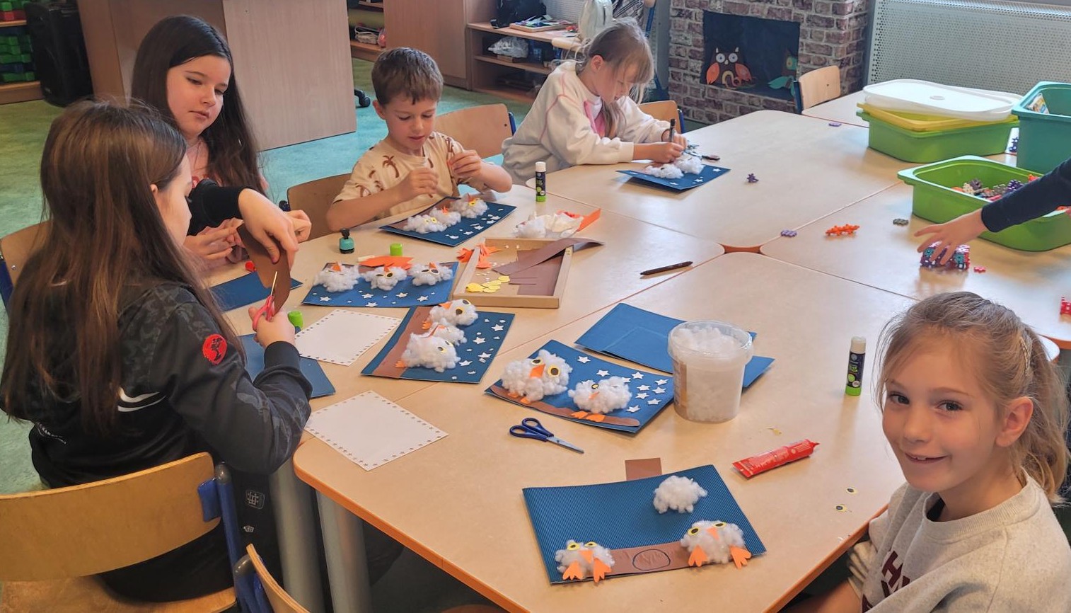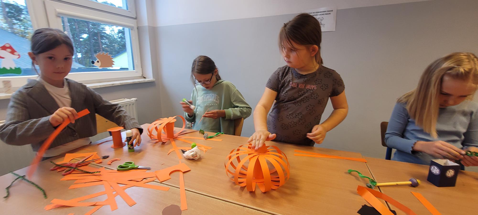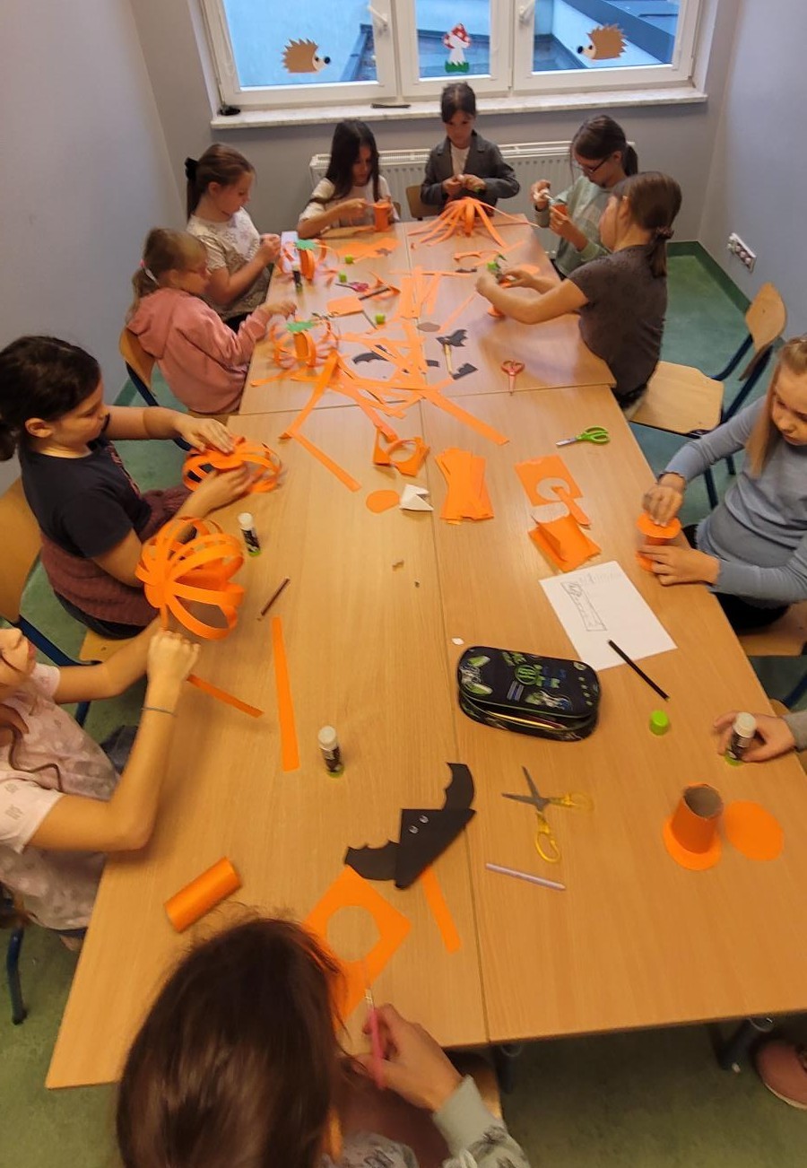 Dzieci z zaangażowaniem tworzyły prace plastyczne, takie jak urocze sówki czy jesienne ludki, parasole, które pięknie ozdobiły naszą świetlicę. Wykonaliśmy również jesienne pejzaże, bajeczne dynie. jesień u nas to czas kreatywności i dobrej zabawy!