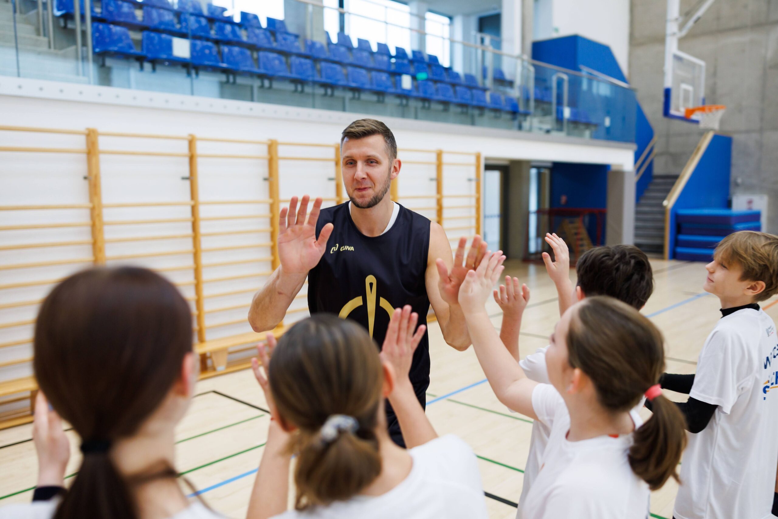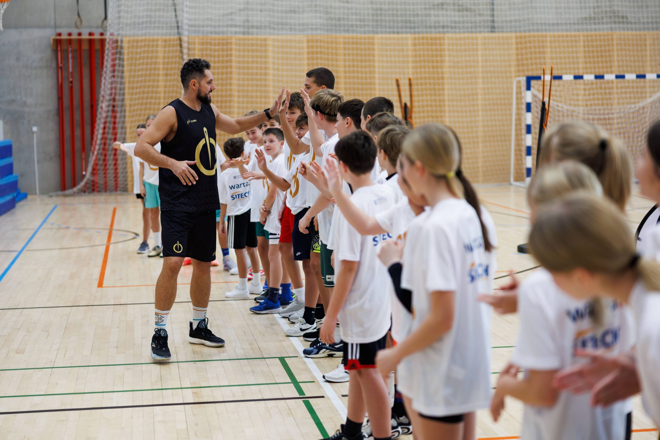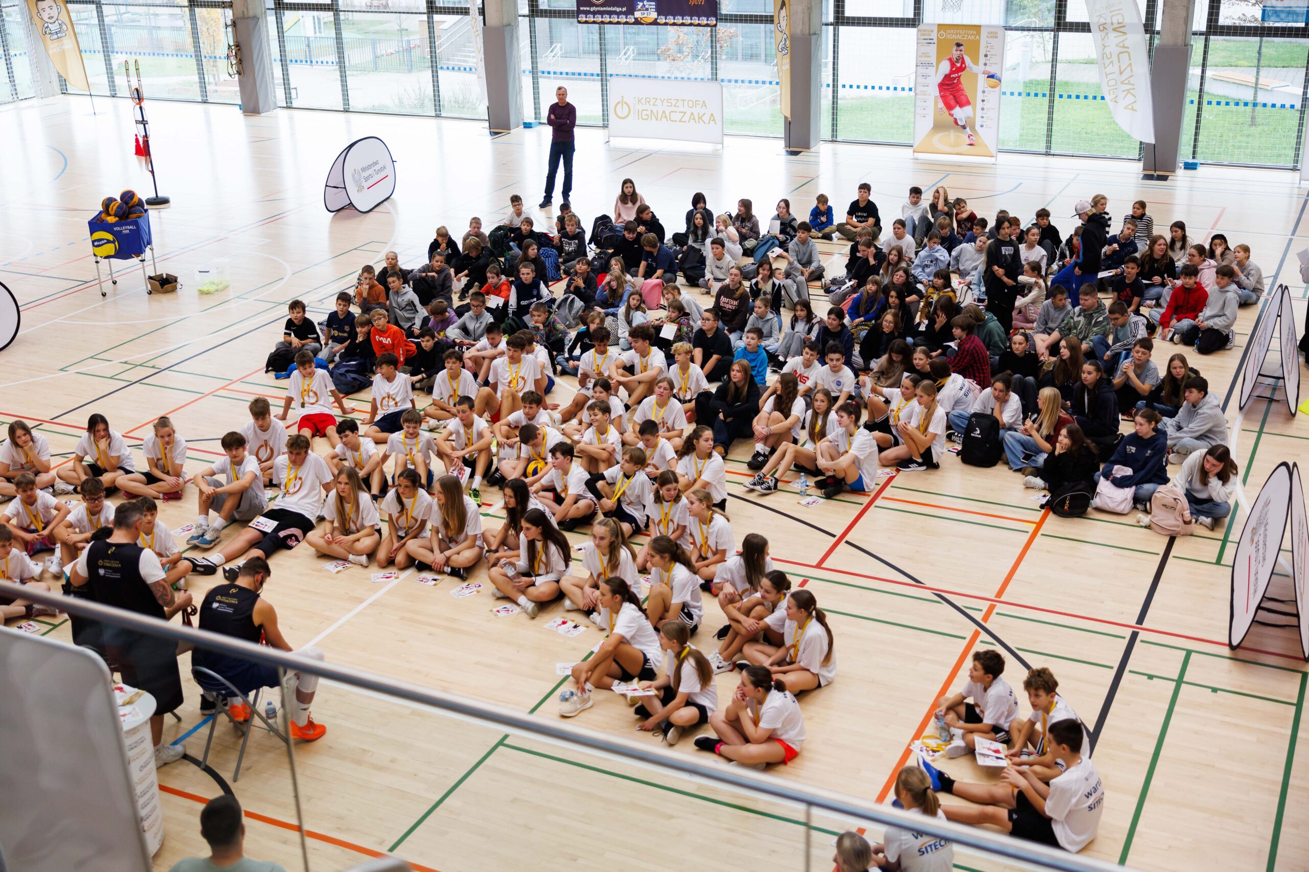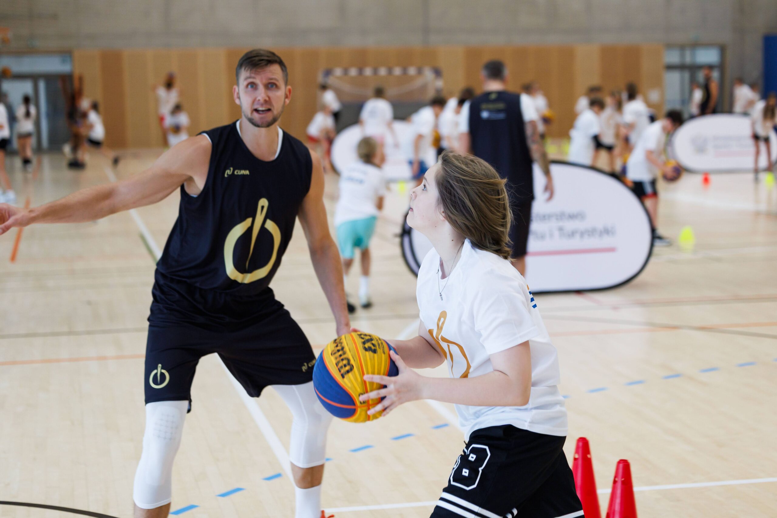 W części 1 mieli oni okazję odbyć trening koszykarski prowadzony przez Przemysława Zamojskiego i Pawła Pawłowskiego – wybitnych reprezentantów Polski w koszykówce. Trening był okazją do dobrej zabawy, nauki techniki i inspiracji płynącej z doświadczenia mistrzów. Po treningu odbyła się prelekcja dla całej społeczności szkolnej prowadzona przez koszykarzy i wybitnego reprezentanta Polski w siatkówce Krzysztofa Ignaczaka, która poświęcona była dwóm ważnym tematom: Hejt w Internecie i Bezpieczeństwo w sieci.